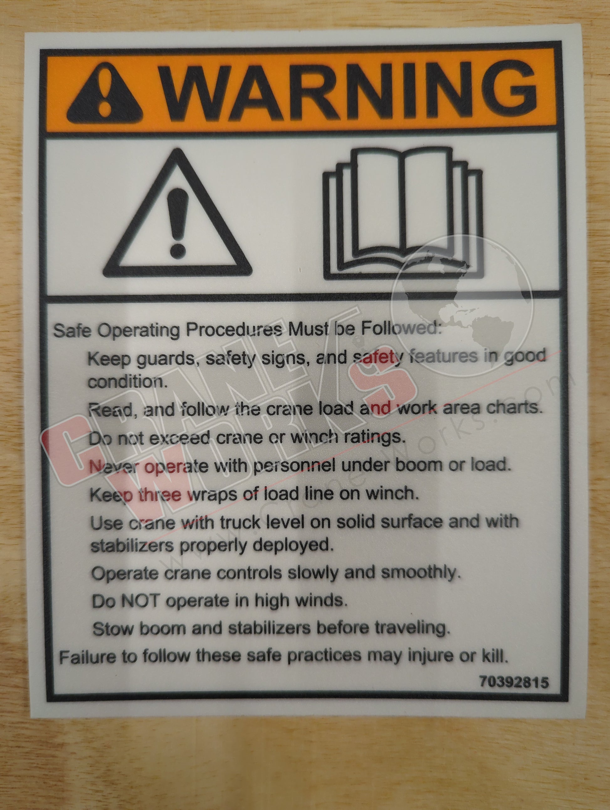 70392815 | New Decal-Warning Operation