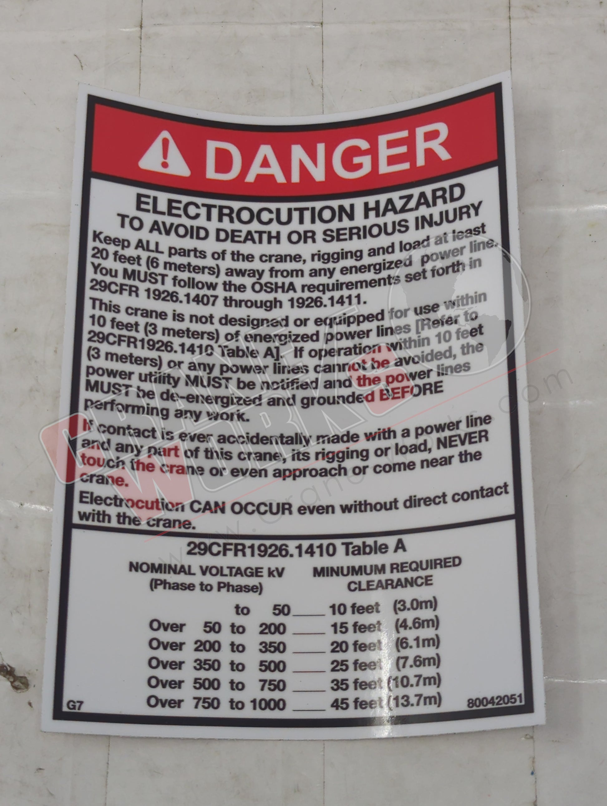 80042051 | New Decal-Danger-Electrocution Hazard